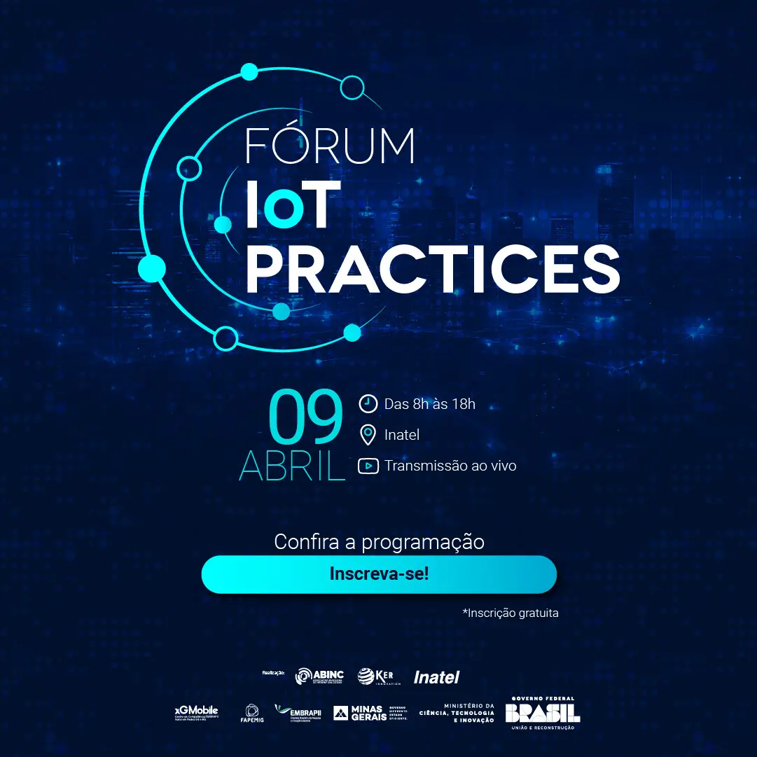 O Instituto Nacional de Telecomunicações – Inatel sedia, no dia 9 de abril, o Fórum IoT Practices. Promovido pela Associação Brasileira de Internet das Coisas (ABINC), KER Innovation e Inatel, a iniciativa conta com o apoio do Centro de Competência EMBRAPII Inatel em Redes 5G e 6G – xGMobile, e acontece no Laboratório de Ideação com transmissão ao vivo.